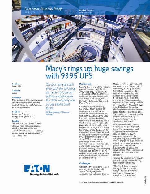 SIGMA Engineering Group assessed, managed and delivered an $83K utility rebate to Macy's.